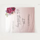 Una alfombra para una fiesta de cumpleaños número 40. Un fondo degradado suave rosa dorado elegante y femenino. Decorado con flores de color púrpura oscuro, burdeos y rosa. Plantillas para un nombre y una fecha. El texto: Cumpleaños 40 está escrito en negro con un estilo de letra manuscrita moderna grande. Perfecto como decoración para la fiesta o como fondo para fotos.