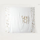 Celebra tus 50 años con este letrero de bienvenida que también sirve como fondo para una cabina de fotos con estación de selfies. Un diseño de confeti dorado y blanco para destacar este momento importante. Personaliza con tu nombre.