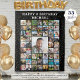 Celebre cualquier cumpleaños con una exhibición de collage de fotos impreso en un telón de fondo de tapiz utilizando esta plantilla fácil de subir con 55 fotos cuadradas de él o ella a través de los años y entretenga a los invitados de la fiesta. El diseño presenta confeti dorado, su texto personalizado (la muestra sugiere FELIZ CUMPLEAÑOS NOMBRE) en su elección de estilo y color de fuente y su elección de color de fondo (mostrado en negro) para que pueda personalizarlo para coordinar con los colores del tema de su fiesta. OPCIONES DE TAPIZ: La muestra se muestra en el tamaño de 50x60" - otros tamaños están disponibles en la página de pedidos. ASISTENCIA: Para obtener ayuda con la modificación del diseño o personalización, cambio de color, cambio de tamaño o transferencia del diseño a otro producto, contacte al diseñador ANTES DE PEDIR a través de