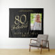 Elegante Tapiz de Cumpleaños 80 y Fabuloso Foto Telón de Fondo Negro Dorado. Texto de 80 y fabuloso en escritura dorada de moda sobre fondo negro. Personalízalo con tu foto, tu nombre y tu edad, y haz tu propio telón de fondo de fiesta de cumpleaños elegante para la fiesta de cumpleaños de una mujer.