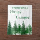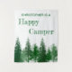 Feliz cumpleaños de camper con árboles de bosque en varios tonos verdes