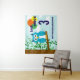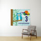 ¡Mira quién está teniendo un cumpleaños! Un búho azul divertido en una escena boscosa con cielo azul y nubes esponjosas
