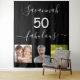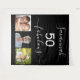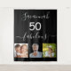 Para una fiesta de cumpleaños sorpresa de 50 años (o cualquier edad). Un collage de 3 de tus fotos de ella, amigos, familiares, intereses o mascotas. Un color de fondo negro clásico y elegante. Personaliza y agrega su nombre y edad 50. El texto: Fabuloso está escrito con un estilo de letra manuscrita de moda con florituras. Texto blanco.