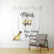 Celebra cualquier cumpleaños con esta divertida y festiva pancarta editable de cumpleaños CHEERS TO # AÑOS, fondo para fotos o colgante de pared en negro y dorado con una bebida de celebración de una botella de vino, cerveza o champán, tipografía moderna de letra manuscrita y tu texto personalizado. La muestra muestra la edad 40 pero se puede cambiar fácilmente a cualquier edad. Contacta con el diseñador a través de Zazzle Chat o makeitaboutyoustore@gmail.com si deseas que se modifique este diseño, en otro producto o deseas elementos coordinados.
