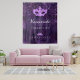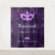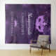 Para una Quinceañera femenina y glamurosa, fiesta de cumpleaños número 15. Un patrón de encaje floral púrpura profundo como fondo. Decorado con polvo brillante falso, una máscara de máscara y una tiara. Personaliza y añade un nombre. Se puede utilizar como pancarta de bienvenida, decoración de pared de fiesta y como fondo para fotomatón.