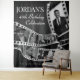 A black and white filmstrip-style tapestry backdrop designed for a classic Hollywood movie theme. Personalized with custom photos and text, this backdrop creates a bold statement for birthdays, parties, and celebrations for both men and women, perfect as a photo backdrop or main party décor.