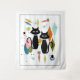 Este llamativo diseño muestra una divertida mezcla de felinos caprichosos junto a Símbolos Geométricos, todo pintado en el aura nostálgica de los colores retro. Una armoniosa mezcla de tonos verdes, amarillos, azules, Naranjas y negros. Este diseño clásico y único es el homenaje perfecto al estilo de la estética moderna de mediados de siglo, la función casera y la moda. No es sólo un diseño, es una declaración.