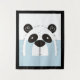 Cara moderna de oso panda sobre fondo de bloques de color azul y blanco
