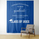 Diseño moderno y elegante impreso en tapiz azul y blanco para cabina de fotos de graduación que se puede personalizar con tu texto. ¡Visita la tienda Graphic Art Design para ver otros productos que coinciden con este diseño!