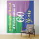Fondo de cumpleaños 60. Celebre un cumpleaños con un tapiz personalizado colgado en la pared con el nombre del destinatario y el número de años. Fondo para una fiesta para una persona de 60 años.