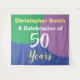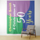 Celebre un cumpleaños con un tapiz personalizado de pared colgante que muestra el nombre del destinatario y el número de años. Fondo para una fiesta para una persona de 50 años.