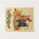 Tomas de cerveza clara y oscura con hojas de otoño, calabazas y textos de Oktoberfest...tapiz