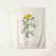 Esta flor silvestre amarilla es dibujada a mano de manera realista y tiene un dibujo de color gris de una mariposa detrás. El tapiz tiene un toque vintage y retro y es perfecto para el hogar de las damas de la planta o de cualquiera que ame las mariposas y las flores. Debajo encontrarás el número romano como año de creación, con el texto francés "Flores salvas y papillones"