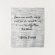 Agradable tapiz con una sabia cita: "Abre la boca sólo si lo que estás a punto de decir es más hermoso que el silencio". Atribuido a un antiguo proverbio árabe. El tapiz tiene un fondo de ladrillo claro de color beige y descolorido que aporta profundidad e interés al diseño.