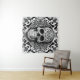 Tapiz de cráneo de encaje sonriente blanco y negro