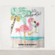 Agrega un ambiente alegre y playero a la decoración de tu fiesta de cumpleaños con este tapiz tropical. Con un flamenco rosa lindo en la playa disfrutando de un cóctel tropical junto a una palmera con una leyenda de "vamos a celebrar" en letra manuscrita moderna y casual. Esto también hace un divertido fondo para fotos para ti y tus invitados. Arte de KL Stock.