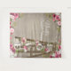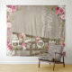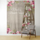 Fondo de madera rústica de granero y flores de acuarela con escalera de madera decorada y luces de cuerda brillantes y letras de "Amor" para ducha nupcial o cualquier ocasión.