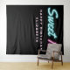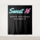 Tapiz de fiesta de cumpleaños moderno y fresco con "Sweet 16" escrito en letra cursiva rosa y azul turquesa con efecto de luces de neón sobre fondo negro. Puedes personalizarlo con su nombre. Un área en blanco en la parte inferior proporciona espacio para que los invitados se tomen fotos contra el fondo.