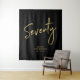 Esta tapicería moderna es perfecta para una fiesta de cumpleaños 70 chic de negro y dorado. Tus invitados disfrutarán tomando una foto con este fondo de fiesta sofisticado y recordarán tu día especial. El diseño presenta un "Setenta" de pincel dorado con texto personalizado. Puedes personalizar el nombre, evento y fecha en la parte inferior de la tapicería. ¡Gracias!