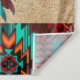 ¡Este es un "One of a Kind" único! El Kokopelli del suroeste toca la flauta y baila bajo el sol en un fondo turquesa... ¡Rodeado por un borde turquesa, Naranja y negro sobre un fondo de cuero de poca importancia!