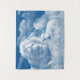 León y cordero en el cielo con tapicería de nubes.