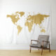 Tapiz de mapa mundial con efecto metálico dorado que incluye muchos detalles y pequeñas islas sobre un fondo blanco sólido para decorar una habitación inspiradora o fondo de fotomatón en una boda o fiesta con tema de viaje.