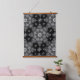Este Tapiz tiene la impresión de un diseño de azulejos original. Los colores son blanco y gris sobre un fondo negro. El diseño es diagonal y se repite para que cada esquina muestre un cuarto del medallón. Este medallón se inspiró en la alfombra oriental del fabricante. El diseño de las baldosas proviene del creador de mosaicos de Oregón Fay Jones Day.