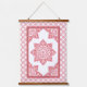 Este impresionante tapiz presenta medallones rojos suaves sobre un fondo blanco. Este Tapiz tiene madera en la parte superior e inferior, lo que hace que cuelgue muy estrecho. El exterior tiene un borde de pequeños medallones. En el centro hay un gran medallón a juego. Los medallones están basados en baldosas hechas a mano por el fabricante de baldosas de Oregón Fay Jones Day. Busque la alfombra de área correspondiente.