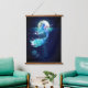 tapicería mural con la imagen de una sirena y luna llena en el mar por la noche.