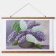 El cuadro muestra un ramo de lilas verdes y lilas. Está en un fondo claro.