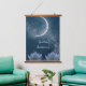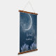 Un lindo tapiz basado en una carta oráculo que creé. El fondo es un azul oscuro, medianoche, que brilla con las estrellas y la luna que cuelga en el cielo sobre las flores de loto.