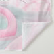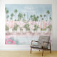 Este telón de fondo para fotos cuenta con una piscina con una fila de paraguas de patio a rayas rosas y blancas con palmeras altas en el fondo. Puedes personalizarlo con un nombre. Perfecto para un cabina de fotos en una fiesta junto a la piscina.
