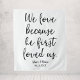 Amamos porque él nos amó primero pancarta de decoraciones de fondo de boda de iglesia con nombres de novia y novio y la fecha. Diseño en negro y blanco con dichos religiosos. También ideal para una fiesta de boda, ceremonia, como decoración de pasillo, decoraciones de mesa de boda, fiesta de regalos de boda, y más. Úsalo para colgarlo en una pared, arco o soporte de fotografía.