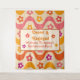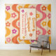 Esta es una alfombra personalizada para fiesta de soltera retro groovy con flores retro muy lindas en olas abstractas groovy en rosa, naranja, amarillo y púrpura. Puedes cambiar los detalles y hacerla tuya usando la plantilla personalizable.