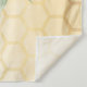Elegante y divertida tela para despedida de soltera de verano. Fondo amarillo y blanco con patrón de panal de abeja. Con un marco geométrico de oro falso. Decorado con girasoles rústicos pintados con acuarela en amarillo y naranja y felices abejas. Con el texto: Novia abeja y el nombre de la novia. Personalice y agregue el nombre de la novia y una fecha. Se puede utilizar como decoración de pared para la despedida de soltera o como telón de fondo para fotos.