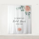 Elegante, clásico, moderno estilo pancarta de despedida de soltera, tapiz. Decorado con rosas pintadas con acuarela en rosa dorado, flores y follaje de eucalipto verde. Con el texto: Despedida de soltera escrito con un estilo de letra manuscrita moderna en negro. Personaliza y añade el nombre de la novia y una fecha. Se puede utilizar como pancarta de bienvenida, decoración de pared para la despedida de soltera o como telón de fondo para fotos.