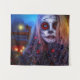 Pedazo perfecto de arte de la pared, terminar su décor casero de Halloween. Ofrece a una señora fantasmal, con el "día" del maquillaje muerto, sosteniendo las flores fantasmagóricas, mientras que la colocación en una linterna encendió el campo.