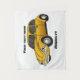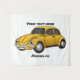 Un coche clásico amarillo feliz. Dibujado en divertido estilo de dibujos animados.