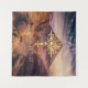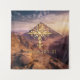 Fiery cruz dorada con montañas desérticas con diseño de tipografía.