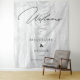 Bienvenido a sus huéspedes con este elegante diseño de bodas de invierno con un fondo rústico de madera y una tipografía de escritura clásica. Personalice con sus nombres, fecha de boda y ubicación para crear un recuerdo memorable que establezca el tono de su día especial. Moderno y clásico Gris/Gris claro, Monogramas de textura Rústica y Negra, Decoración de Bodas de Invierno Gran Fiesta de Bienvenida / Tapiz de Fotos / Tapiz Diseñado / arte original de fat*fa*tin. —