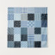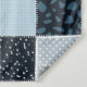 Diseño de caldera. Patrón de retracción inexpugnable a partir de cuadrados cosidos con diferentes ornamentos geométricos. Impresión textil en colores azules.