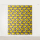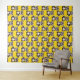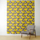 Diseño de patrón de adorable mapache de dibujos animados sobre fondo amarillo
