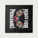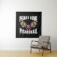 Diseño de pelotas que dice: Paz, amor, pelota.