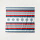 Diseño de temática náutica con rayas rojas y blancas y decoración de brújula