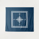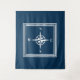 Diseño de temática náutica con decoración de brújula en cuadrados rayados sobre fondo azul