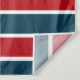 Diseño náutico con decoración de ruedas de vela en forma redondeada con estrellas sobre fondo rayado rojo, azul y blanco
