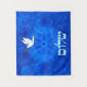 El "shalom" (paz hebrea) y la paloma con un poco de rama de olivo en el pico sobre un agradable fondo fractal azul y blanco que recuerda a las alas de los pájaros.