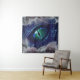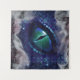 Mítico ojo de dragón gótico medieval azul con tinta de glam morado y niebla.