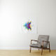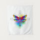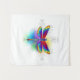 Luminosa, arco iris, libélula poligonal sobre fondo blanco, pintada con acuarela.