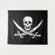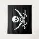 Le pavillon de Jack Rackham diffère par l’utilisation de deux sabres au lieu de deux os entrecroisés en dessous de la tête de mort. Les sabres représentaient sa puissance.